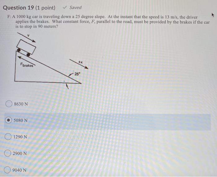Solved Question 19 1 Point Saved F A 1000 Kg Car Is Chegg Com